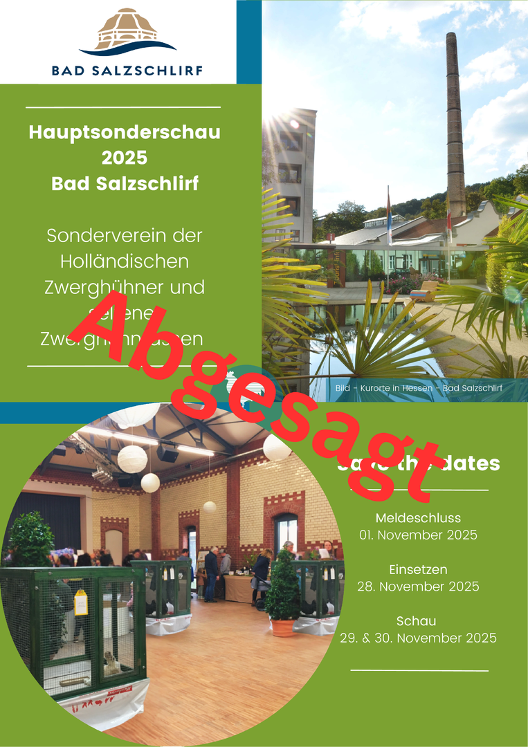 Am 28. bis 30.11.2025 findet die Hauptsonderschau in Lauterbach bei den Zuchtfreunden Hendrik Riemann und Herbert Heßke statt.