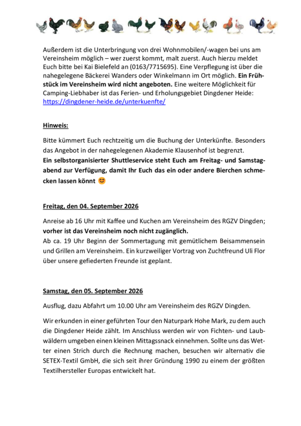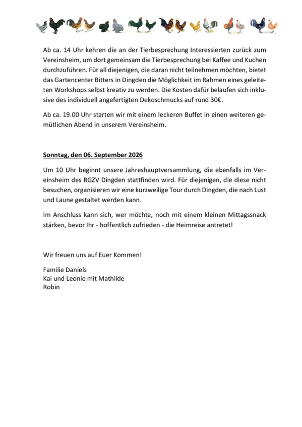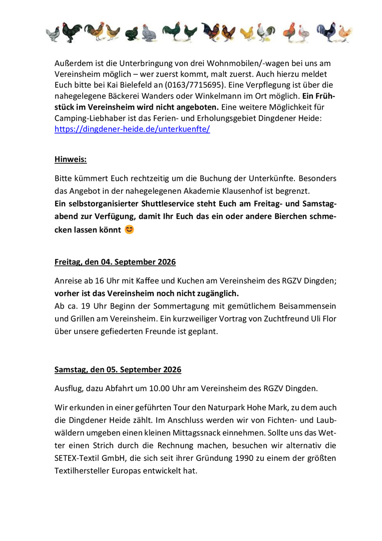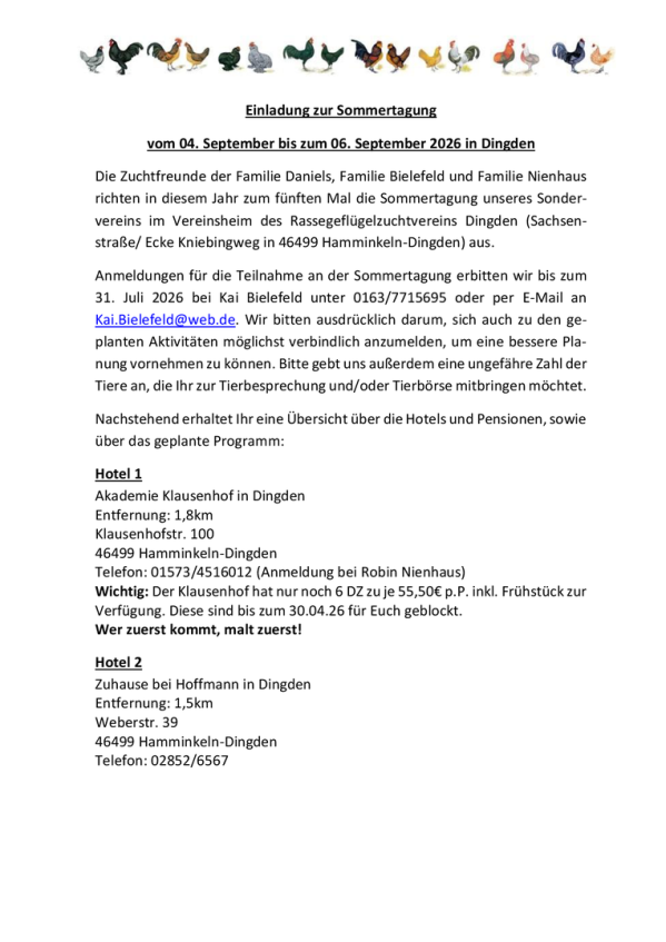 In diesem Jahr gehts an die Niederländische Grenzeund und sind bei Zuchtfreunden aus Dingden herzlich willkommen und die Sommertagung findet vom 4. bis 6. September 2026 in Dingden statt.