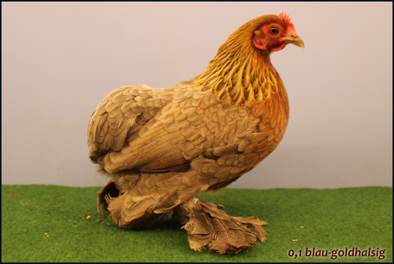Ruhlaer Zwerg-Kaulhühner blau-goldhalsig